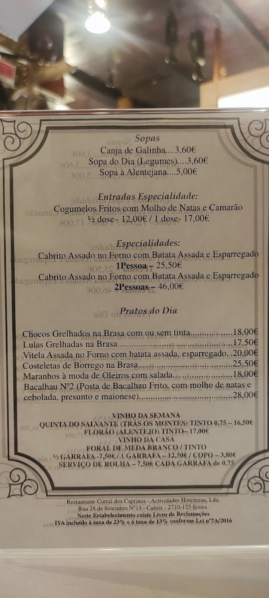 Welcome to Curral dos Caprinos, a gem located in the heart of Sintra, Portugal. Nestled on R. 28 de Setembro, this restaurant brings you the essence of traditional Portuguese cuisine with a distinct focus on goat dishes. Guests rave about the cabrita—roasted goat that boasts tender meat and rich caramelization, best served alongside roasted potatoes and creamed spinach. The portions are generous, ensuring you'll leave satisfied.